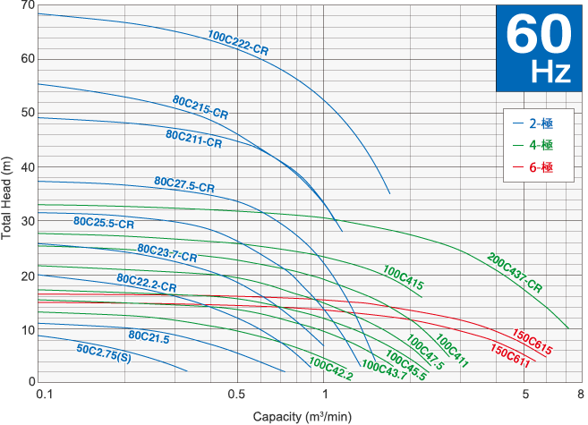 C 系列產品種類豐富,包括出口口徑直徑為 50 - 200mm 的產品以及馬達輸出功率為 0.75 - 37kW 的產品。在 C 系列泵浦中,「CR」型號產品為高度耐久性切割泵浦,其葉輪和吸盤均採用作為標準配置的高鉻鑄鐵製成。C 系列的所有型號產品均可以與著脫型裝置配件裝置組合使用,便於安裝和維護。此外,還有一種新型號的乾坑式泵浦產品供選擇。乾坑式泵浦可以安裝於室內,也可以安裝於罐外。憑藉鶴見乾坑式泵浦的原創規格,乾坑式泵浦可以在各種各樣的場地提供傳統沉水式泵浦所擁有的性能。